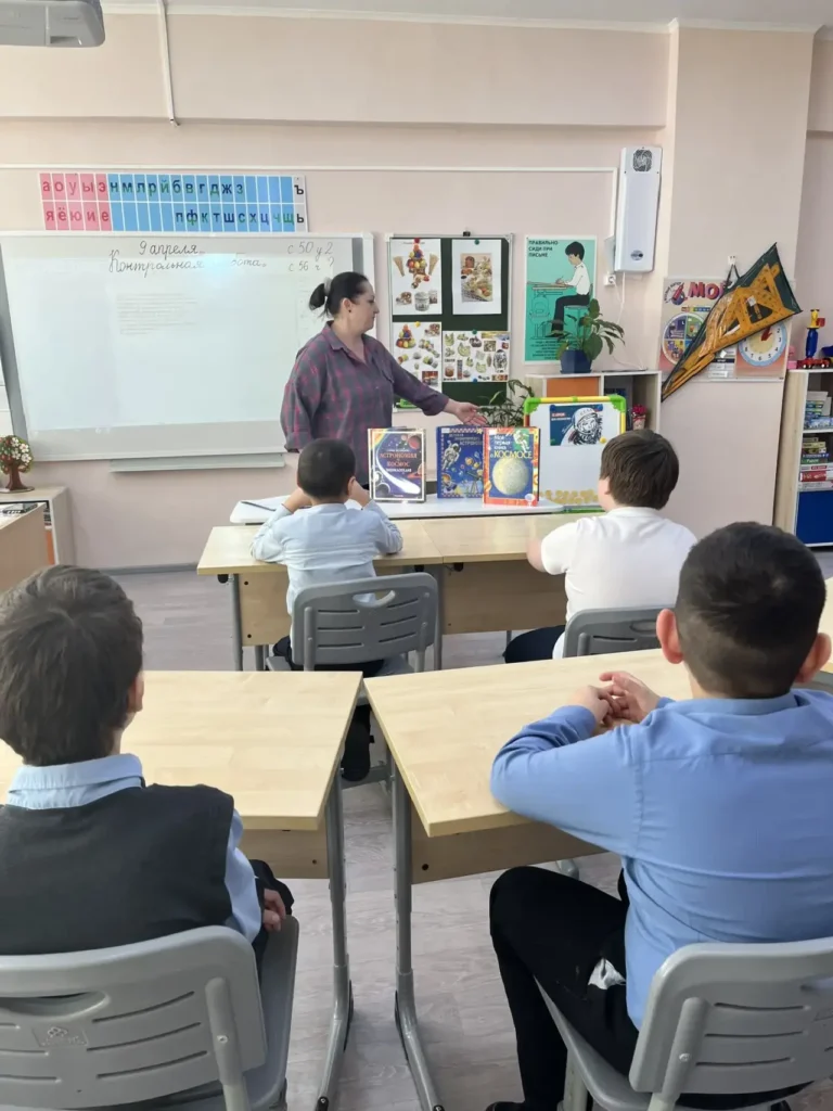 65 лет со дня первого полета человека в космос! Библиотекари совместно с учащимися КОУ Радужнинская школа для обучающихся с ОВЗ отправились в увлекательное путешествие по книжной вселенной. Ребята с интересом рассматривали яркие энциклопедии о космосе, планетах и созвездиях, а также листали свежие номера детских журналов «Непоседа» и «Почемучка». Ребята с удовольствием приняли участие в игре «Встреча с инопланетянами». Задача была сложной: нужно было объяснить пришельцам без слов, что такое «ракета», «скафандр» и «луноход». Читатели замечательно справились с космическими испытаниями: лабиринтами, конструированием ракеты, раскрасками. Все желающие с удовольствием приняли участие в творческом мастер-классе «Взлет ракеты».
