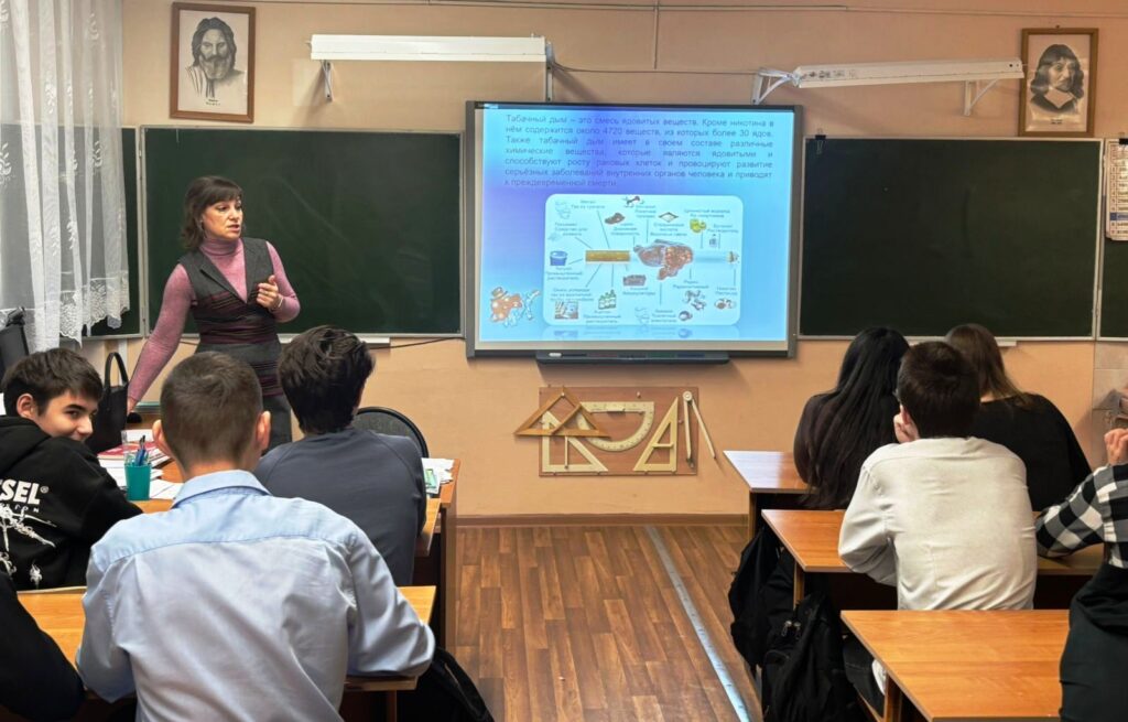 В ходе мероприятия обсудили одну из вредных привычек — курение, его негативное влияние на организм и развитие подрастающего поколения. Поговорили о том, как пассивное курение влияет на здоровье окружающих, о рисках использования вейпов и электронных сигарет, популярных среди молодёжи.