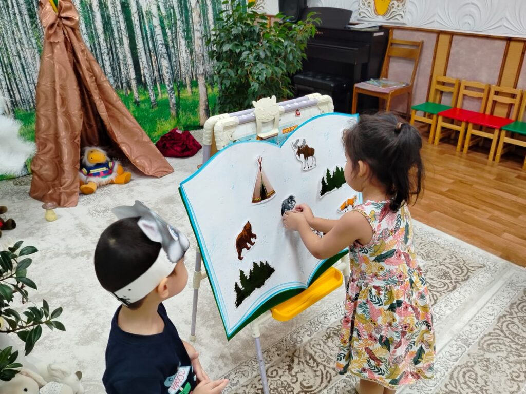 Ребятишки учились определять следы диких животных 🐾, а ещё узнали почему зайца называют длинноухим 👂, прочитав мудрую северную сказку 📚. Наши юные артисты разыграли сказку «У чума»! 🎭 Было так здорово увидеть, как оживают герои северных легенд! ✨ Вместе с малышами создали общую Сказочную книгу Югры! 🤝 В неё вошли дикие животные, которые чаще всего встречаются в сказаниях ханты и манси.