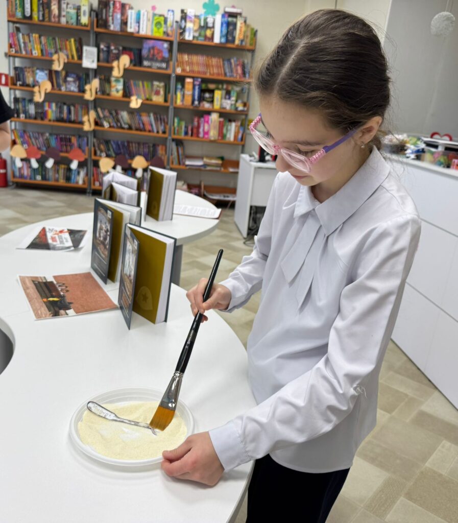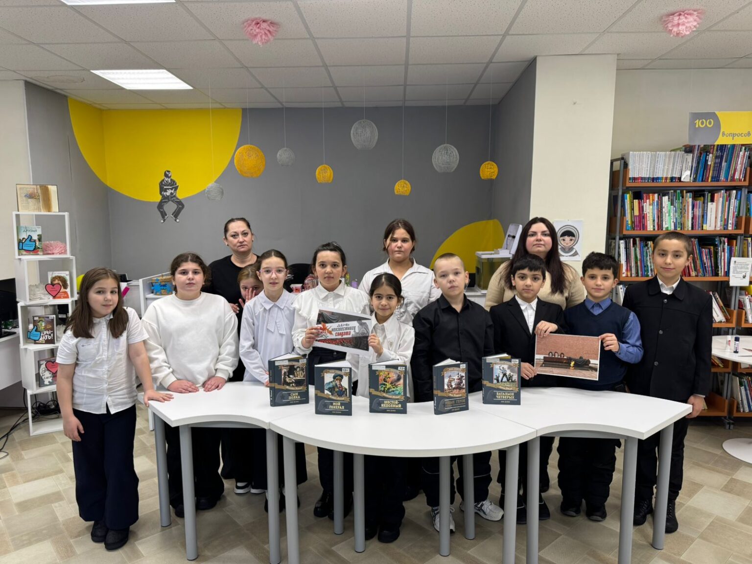 Но память живет не только в камне, но и в книгах. Наши юные гости познакомились с книгами о войне, которые бережно хранят истории подвигов. Эти страницы — мост между поколениями.