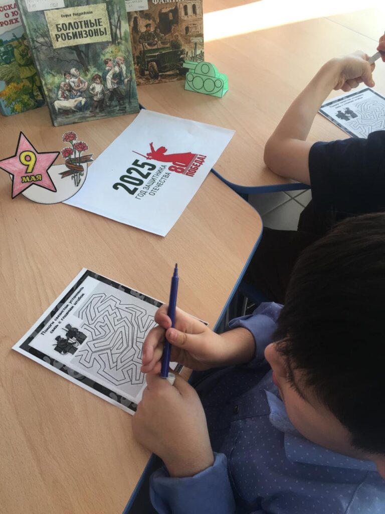 Под таким названием состоялся патриотический час в рамках Читательского марафона 2025. Учащиеся КОУ РШО с ОВЗ познакомились с книгами и журналами о периоде Великой Отечественной войны. Выполнили интересные задания представленной тематики: отгадали загадки, прошли лабиринты, вспомнили военные профессии. А также все присутствующие с удовольствием выполнили творческую поделку.