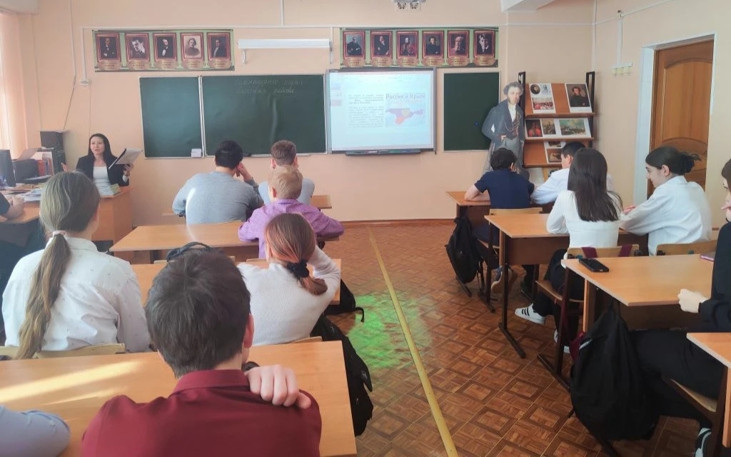 В преддверии Дня воссоединения Крыма с Россией в школе №8 для учащихся 7 класса прошел познавательный час «Крым и Россия — большая семья».