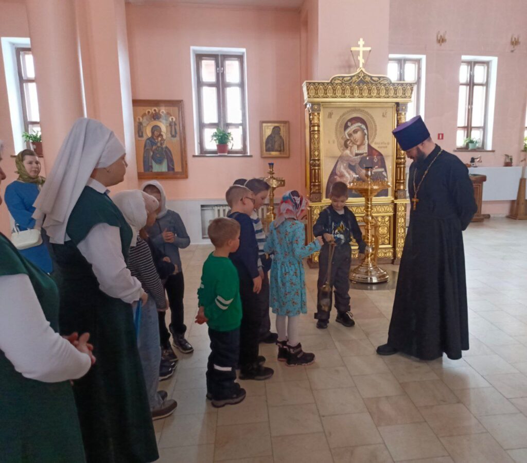 Затем ребята с интересом осмотрели интерьер храма, обращая внимание на уникальные иконы, элементы декора и росписи.