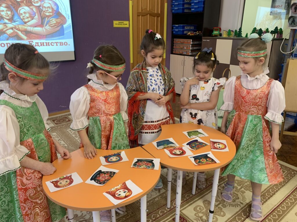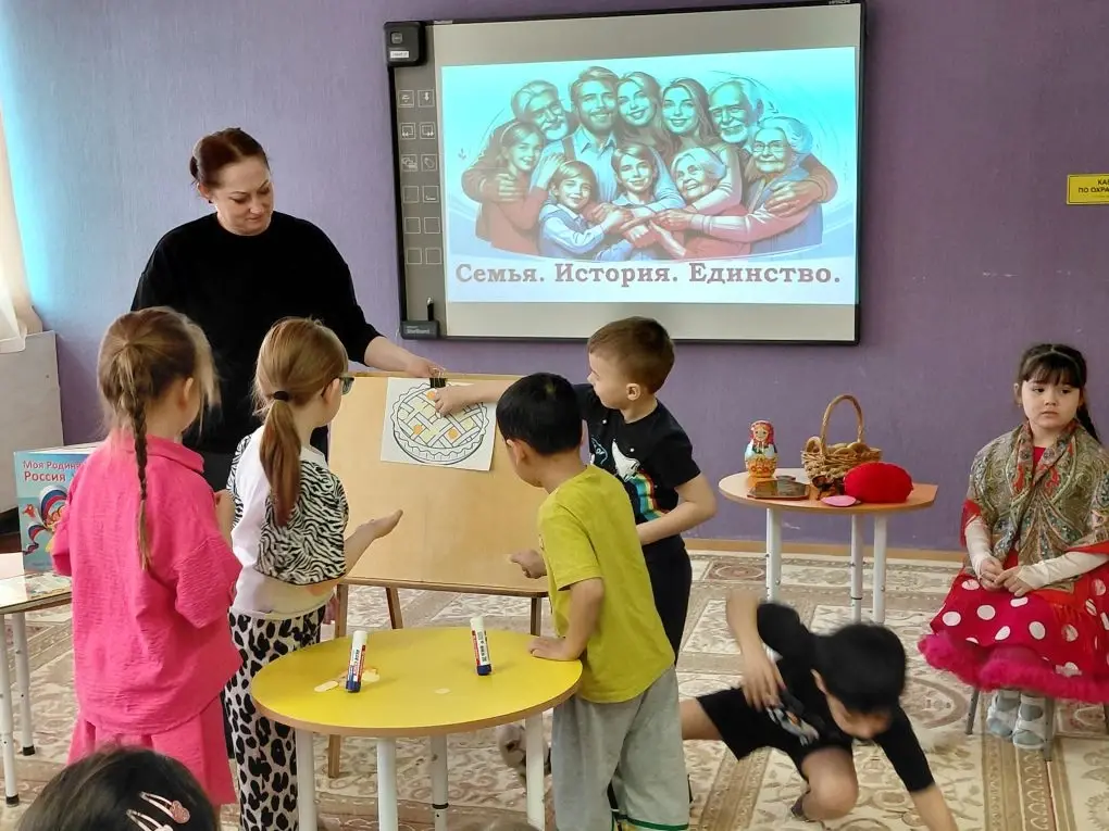 А ещё наших дошколят ждала настоящая интеллектуальная разминка. Они определяли предназначение старинных вещей из русской избы (ухват, чугунок, прялку), собирали матрёшек, которые перепутались, и отгадали загадки о символах нашей Родины. Самым интересным оказалось найти правильную иллюстрацию к каждой отгадке — ребята отлично справились!