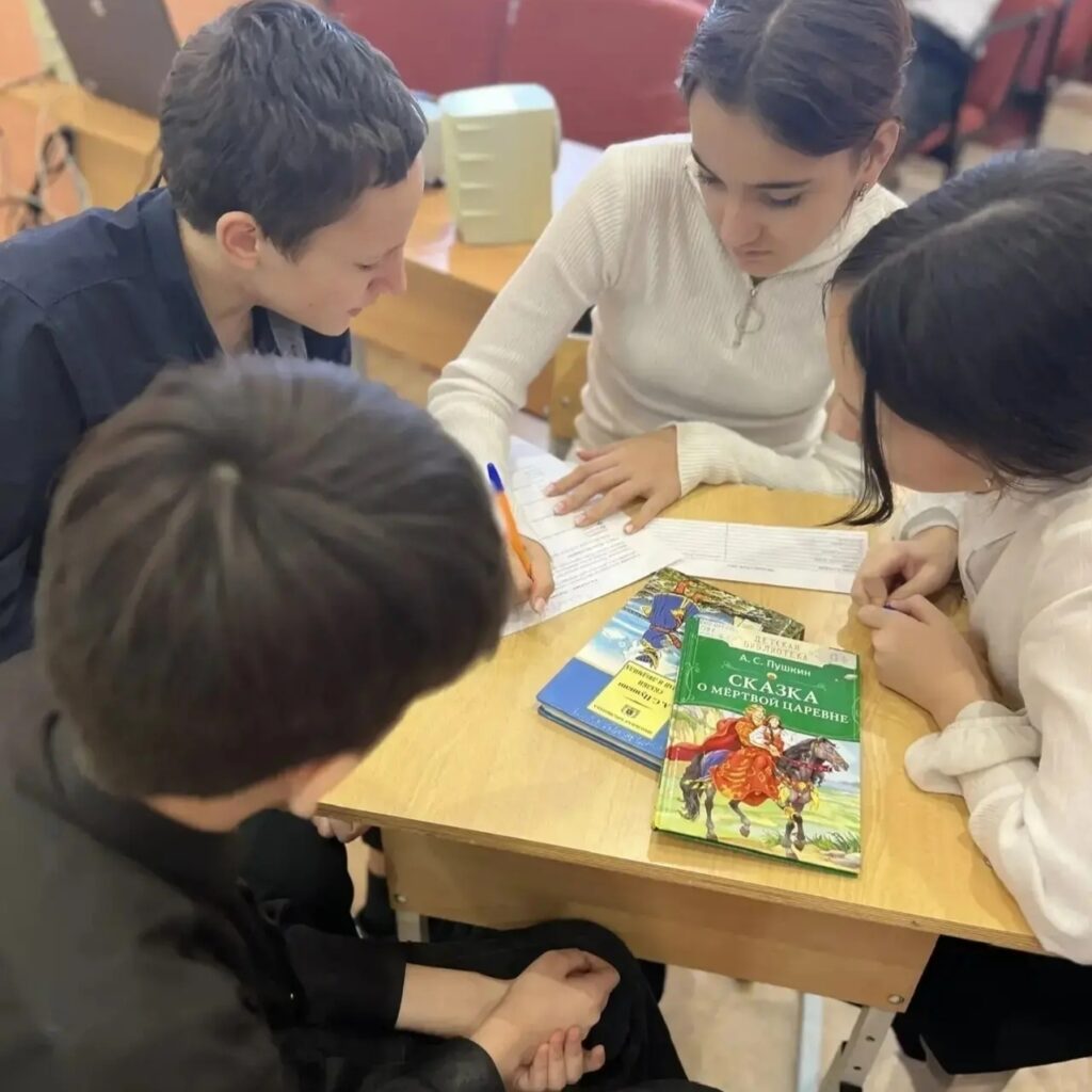 Доказываем это на деле: наша библиотека вместе с педагогами провела для школьников настоящий квиз-приключение. Три команды — «Белочка», «Золотая рыбка» и «Непобедимые» — соревновались в знании пушкинских сказок.
