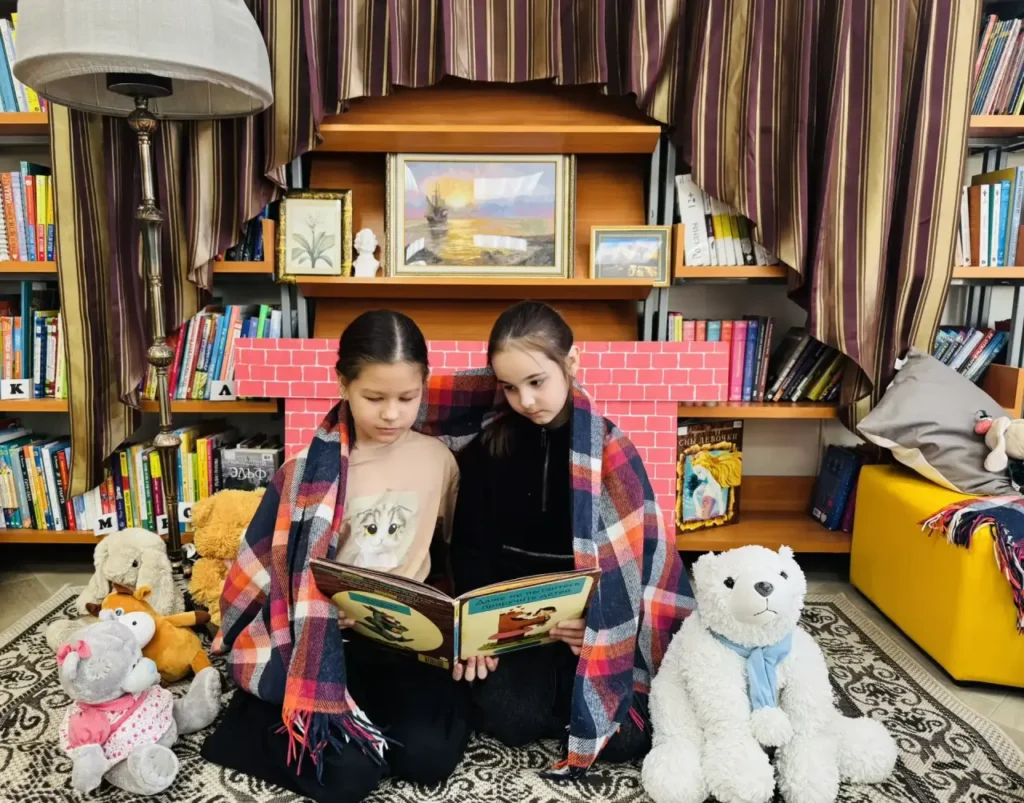 Специально для вас мы оформили уютную фотозону «Семейный вечер у камина». Здесь все продумано до мелочей: тепло живого огня (конечно, декоративного, но очень уютного!), мягкие пуфы, добрые книги и атмосфера, которая располагает к душевным разговорам и совместному чтению.