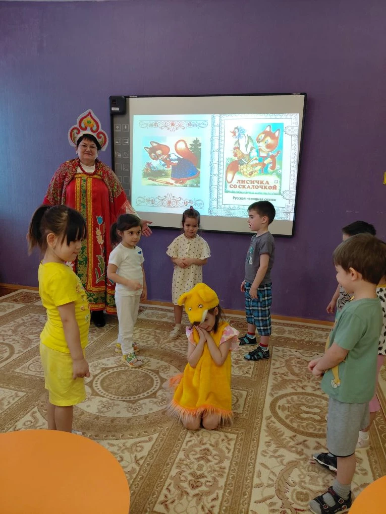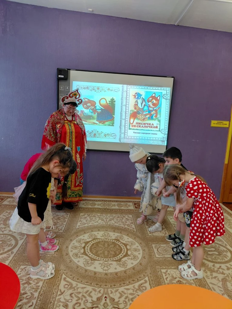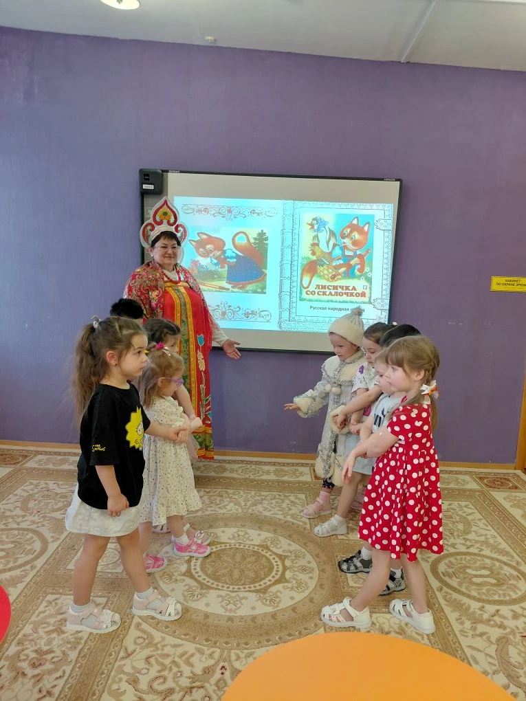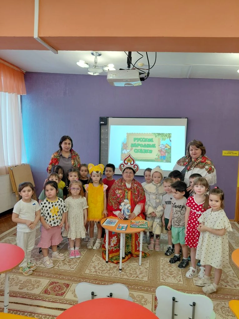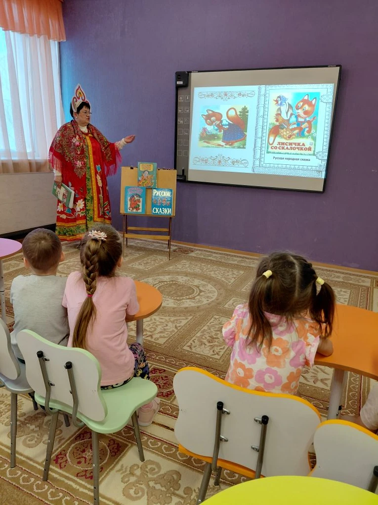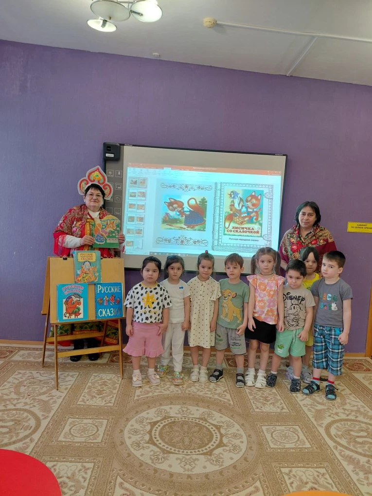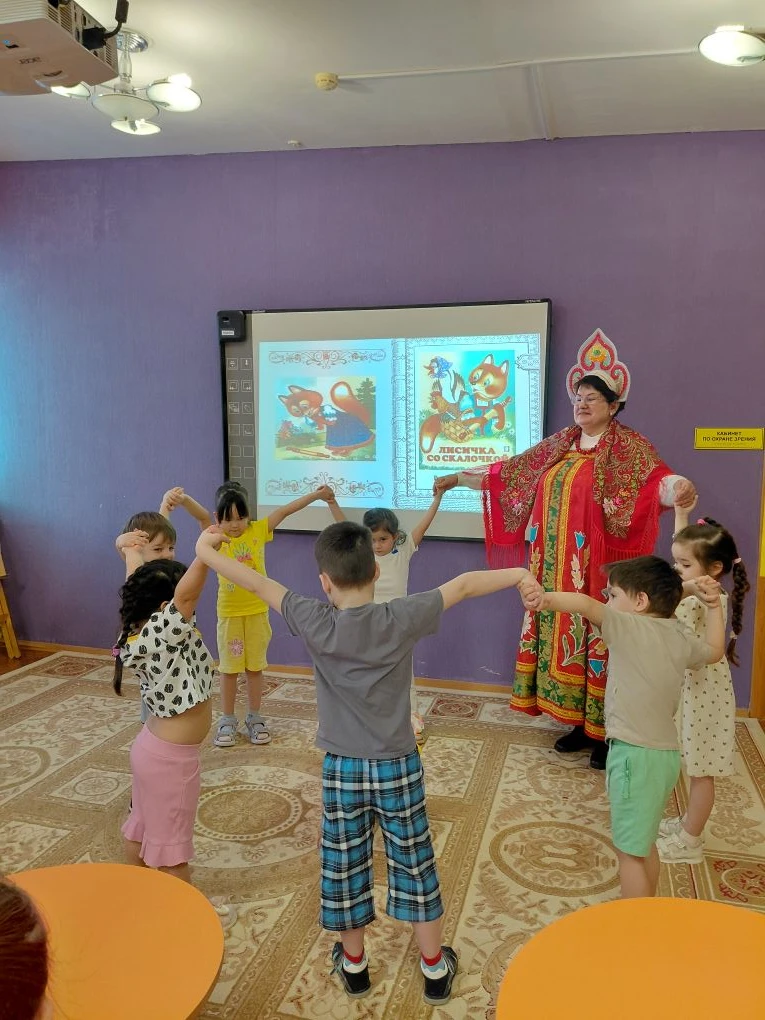 Мы отправились в увлекательное путешествие «В гостях у сказки»! Дружно вспоминали русские народные произведения «Снегурочка» и «Лисичку со скалочкой» 🦊❄️.