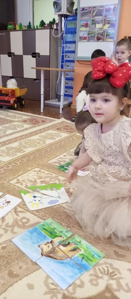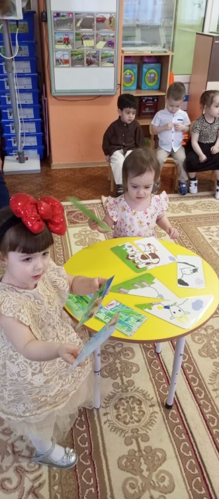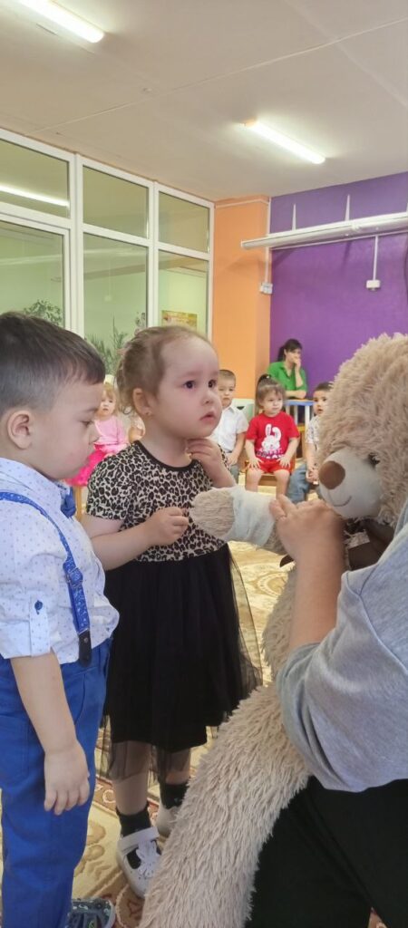 Встреча получилась не просто громким чтением, а настоящей игрой-путешествием по страницам знаменитого цикла. Малыши отправились в импровизированный сад, чтобы собрать самую сочную травку и накормить проголодавшегося козленка. Лечили мишку — да-да, того самого, «которого уронили на пол». Ребята проявили чудеса заботы: перевязали мишке лапку, пожалели его и пообещали, что теперь обязательно будут аккуратнее со своими игрушками. Мишка обещал больше не плакать. Храбрее всех — как бычок! Мы тоже решили проверить свою ловкость и координацию. Под чутким руководством библиотекаря малыши выстраивались в очередь, чтобы пройти по узкой дощечке, стараясь не упасть. «Идёт бычок, качается, вздыхает на ходу…», — шептали дети, но никто из них не боялся, все дошли до финиша.