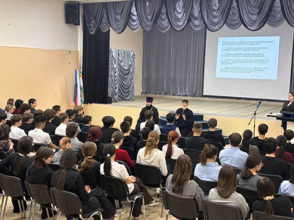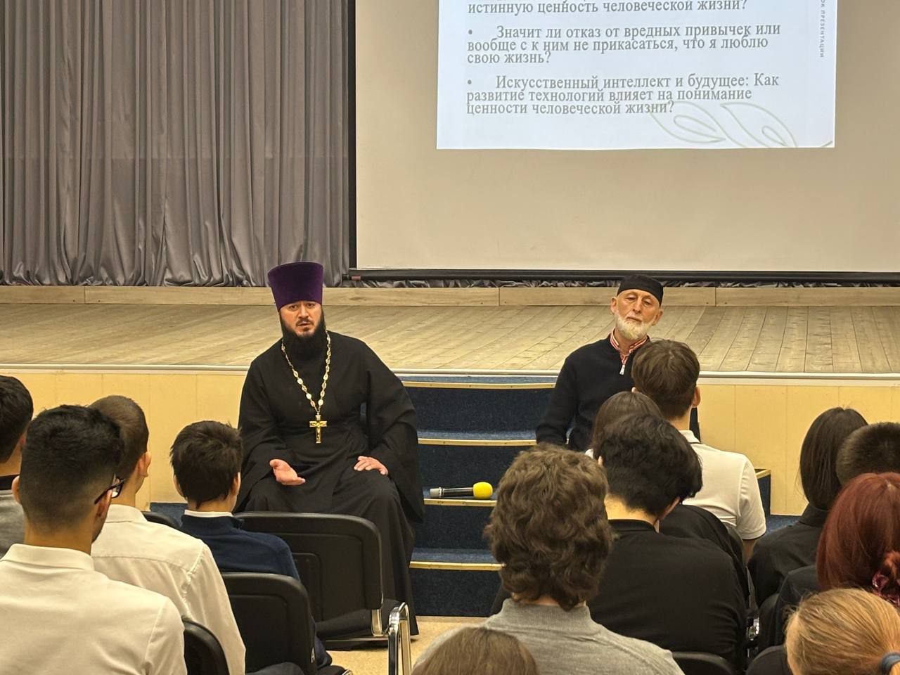 Сегодня в школе №8 состоялся необычный и очень важный разговор. Ученики 9-11 классов встретились с представителями православной и мусульманской конфессий, чтобы обсудить вечные вопросы: в чем ценность человеческой жизни и как ее сохранить в современном мире?